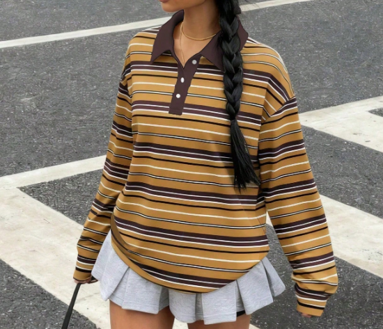 Adoptez un style moderne et décontracté avec ce polo oversize rayé